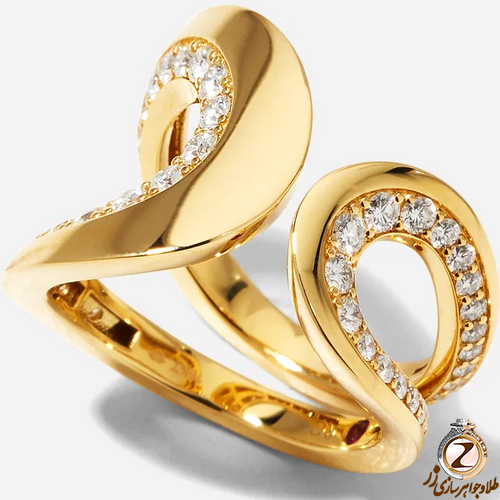 انگشتر الماس زنانه نعل اسب طلا زرد 18 عیار مدرن و جواهر نگین الماس تراش برلیان مدل: wrdf21692