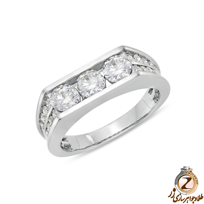 حلقه مردانه طلا 18 عیار سفید و جواهر الماس تراش برلیان طرح مدرن و لوکس مدل wrgm1310