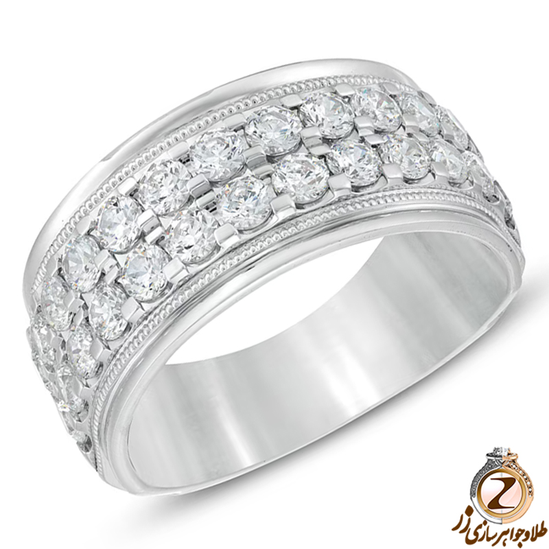 حلقه مردانه طلا سفید 18 عیار و جواهر الماس تراش برلیان طرح حلقه ازدواج اترنتی مردانه مدل wrgm1312