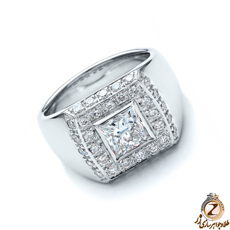 خرید انگشتر پلاتین مردانه با نگین پرنس و الماس تراش برلیان مدل: platin2028 با وزن دلخواه:
