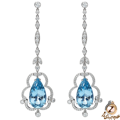 خرید گوشواره طلا سفید زنانه و جواهر با نگین توپاز و الماس تراش برلیان مدل: edf1354 با وزن دلخواه: