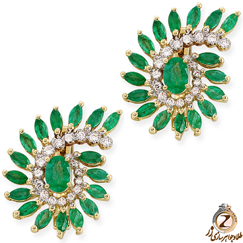 خرید  گوشواره طلا و جواهر زنانه زمرد و الماس تراش برلیان - سایت زر