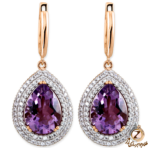 خرید و قیمت گوشواره زنانه طلا رزگلد و جواهر آمیتیست و الماس تراش برلیان - سایت زر