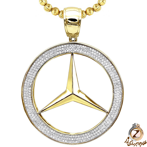 خرید پلاک طلای زرد مردانه با نگین الماس تراش برلیان طرح مرسدس بنز: مدل npdm1056 با وزن دلخواه:
