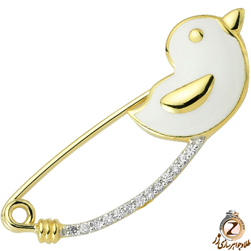 خرید سنجاق سینه طلای نوزاد با نگین برلیان و میناکاری شده طرح جوجو مدل: pgb2200 با وزن دلخواه: