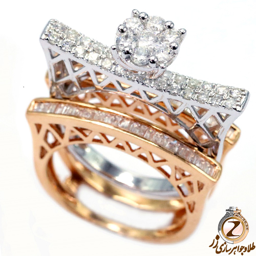 حلقه و پشت حلقه ازدواج با نگین الماس تراش برلیان و باگت سوپر لوکس