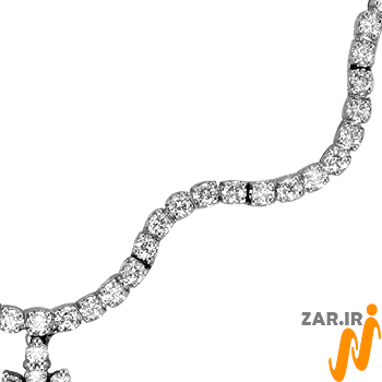 معمولاً در گردنبند طلا سفید زنانه تنها پلاک است که با تراش الماس تزئین میشود؛ ولی در این گردنبند بخشهای قابلتوجهی که در سایر نمونهها از زنجیر تشکیل شده، از طلا بوده و با الماس تراش برلیان مزین شده است. البته بازهم بخشی از کار از زنجیر بوده تا بتوان بهراحتی از این گردنآویز استفاده کرد.