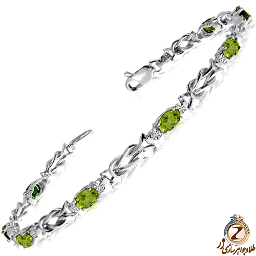 نقد و بررسی دستبند طلا زنانه جواهر زبرجد و برلیان و طلا سفید