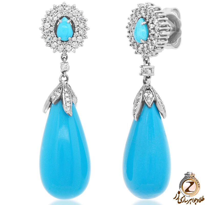 گوشواره فیروزه و طلا یک اکسسوری فوق العاده زیبا با طراحی بسیار چشم نواز می باشد. این گوشواره بسیار جذاب زیبا با استفاده از سنگ ارزشمند فیروزه و طلای سفید ساخته شده است. سنگ فیروزه یکی از سنگ های اصیل و گرانبها می باشد که بسیار مورد توجه خانم ها در سراسر جهان قرار گرفته است. این گوشواره ی بسیار زیبا دارای طراحی فوق العاده ای بوده که در نگاه اول چشم ها را خیره می کند. در ادامه قصد به بررسی طراحی خارق العاده آن بپردازیم.