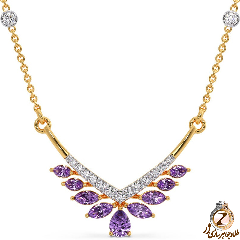 خرید گردنبند طلا زنانه جدید فاخر جواهر آمیتیست و الماس تراش برلیان و طلا زرد 18 عیار مدل: ndf191 با وزن دلخواه: