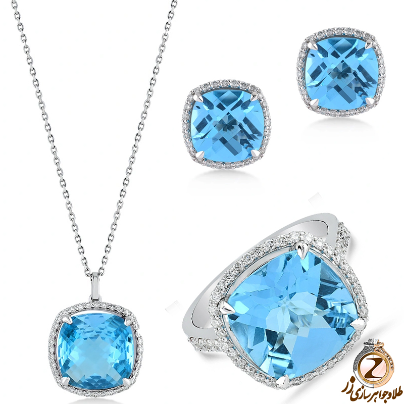 نیم ست طلا سفید دخترانه با جواهر توپاز و الماسهای تراش برلیان