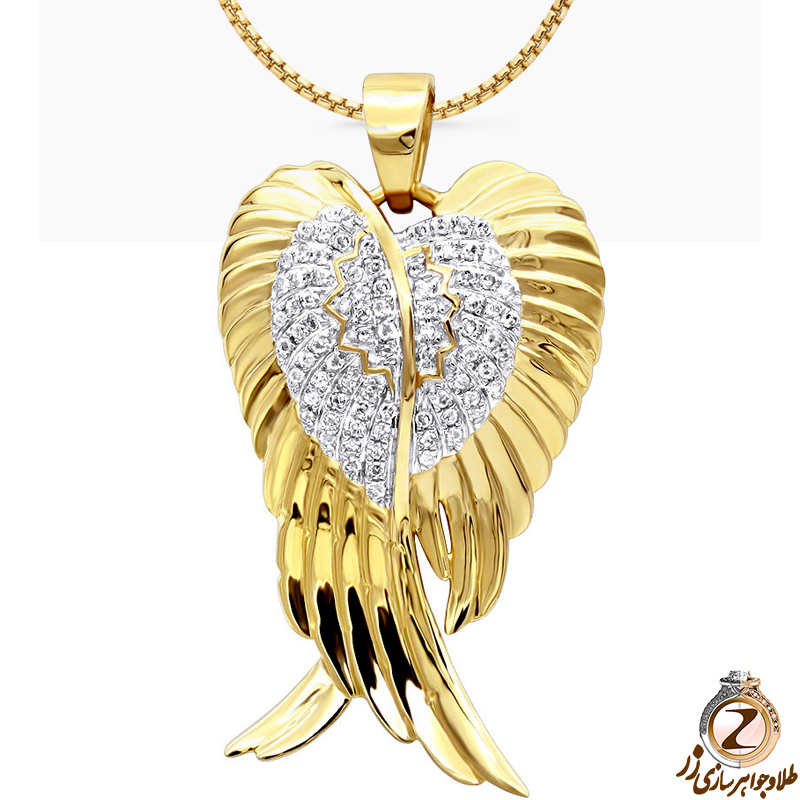 خرید و قیمت پلاک گردنبند طلا زرد 18 عیار مردانه طرح بال فرشته مزین با نگین جواهر الماس تراش برلیان - سایت زر